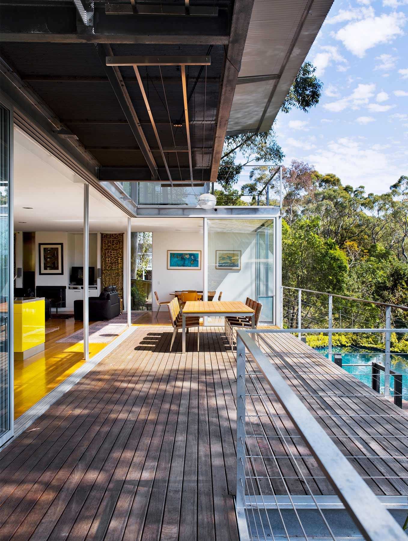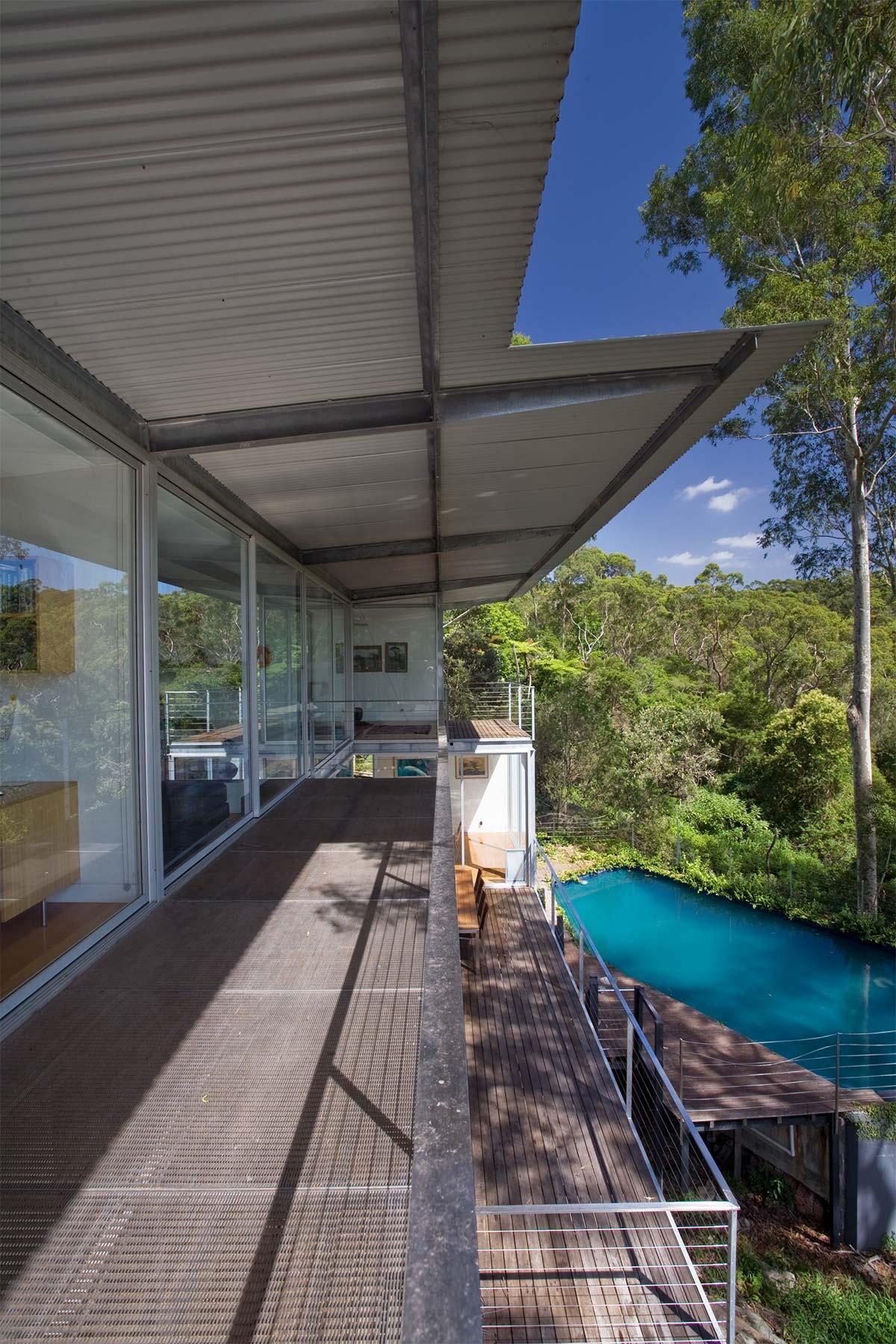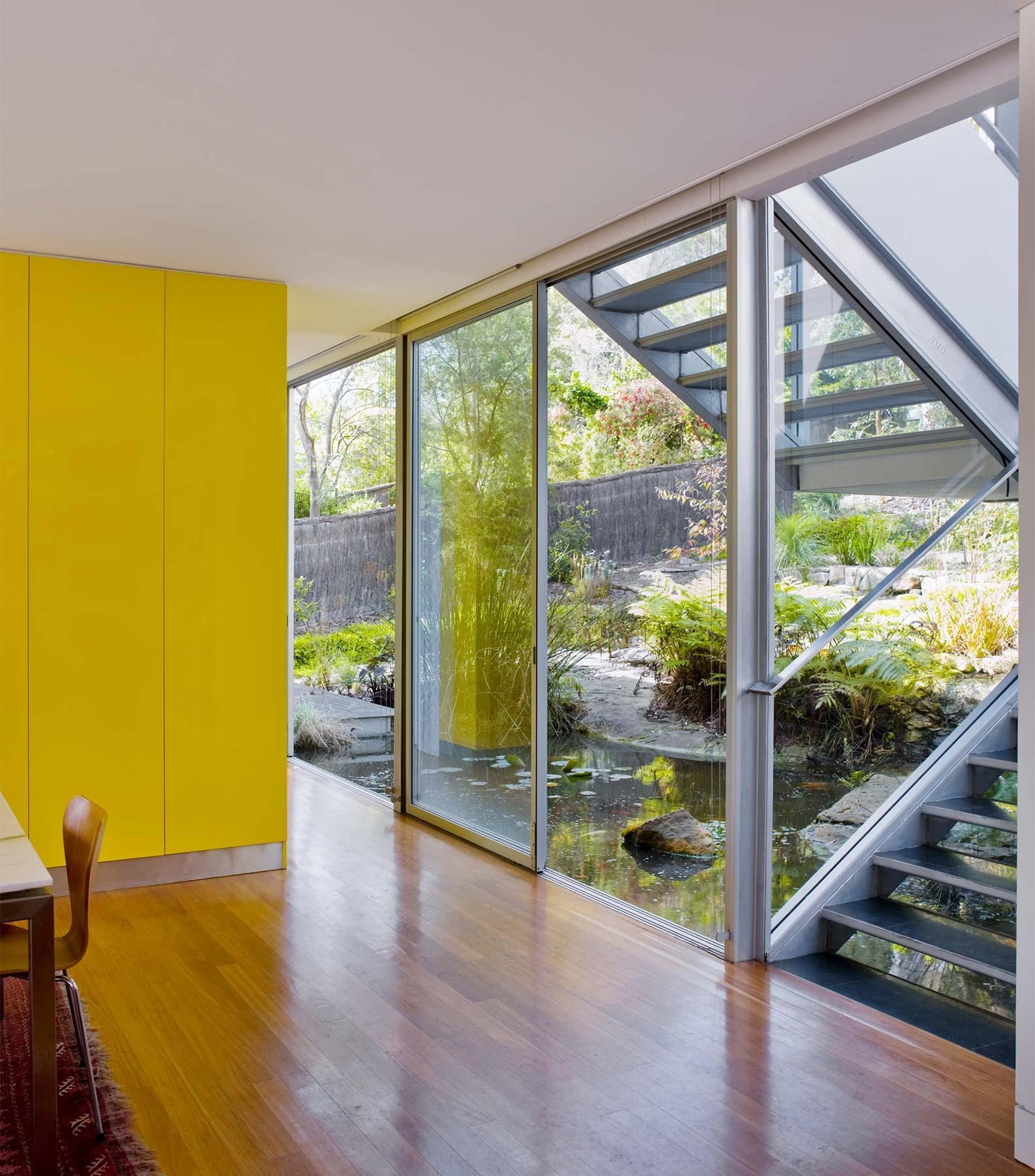 Landscape architect Sue Barnsley, working with the natural landscape created a remarkable indigenous entry courtyard with a pond on the approach to the house. “It’s an unpretentious house which addresses the client’s values and budget and, I hope, provides a sense of refuge, aspect and beauty” says Lippmann. He also like to reflect on Carfrae’s approach to design — the synthesis of architecture and engineering – and expression of the parts of a building — “what you see is what you get”. Apart from the majestic natural surroundings, the articulated skeletal design is easily “read”. There’s an honesty and clarity about how the house is made and how it functions.